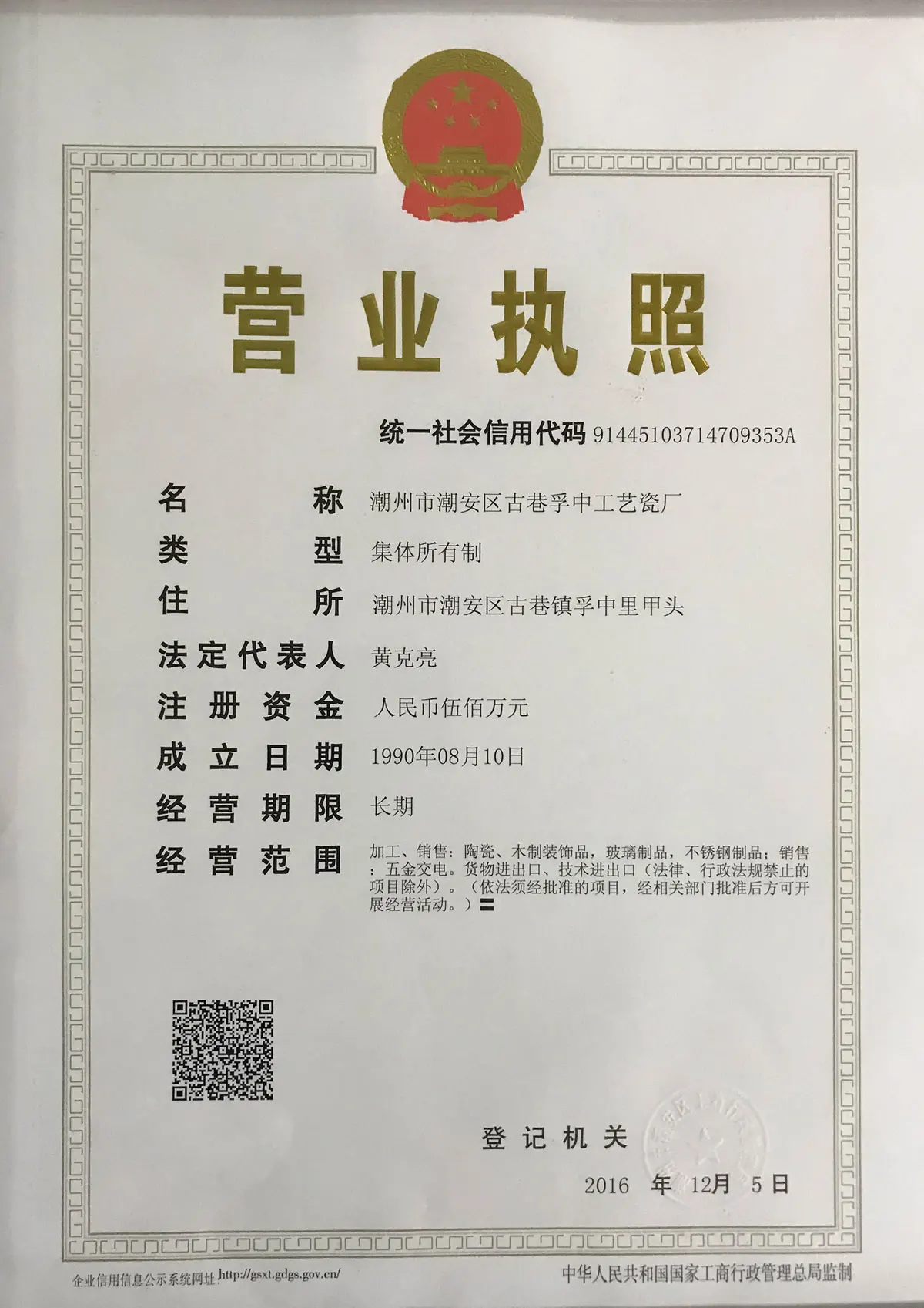 Company Name : Chaozhou Chaoan Fuzhong Craft Ceramics Factory